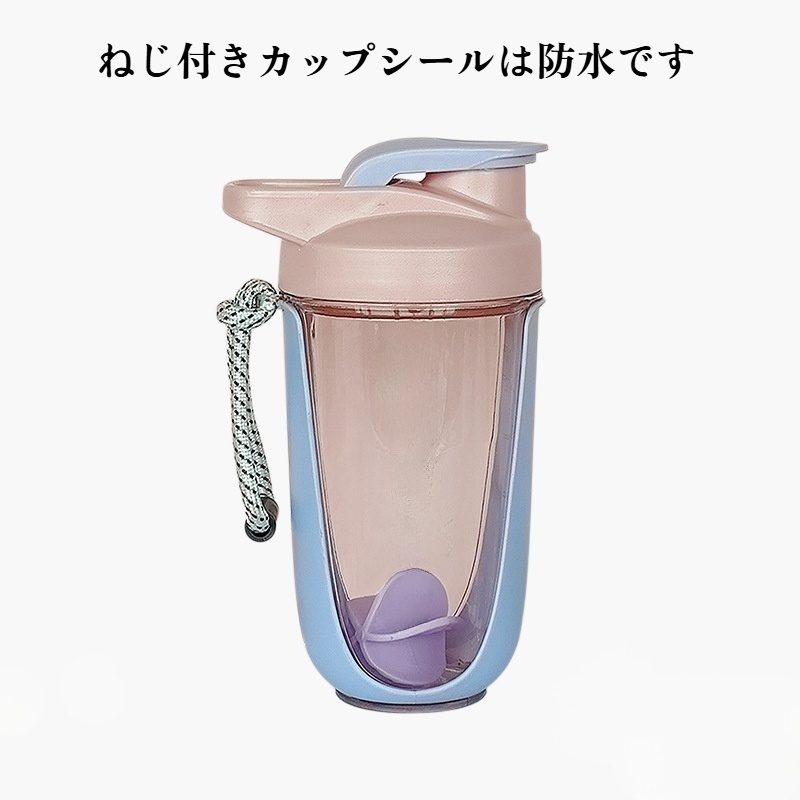 持ち運びに便利なスポーツプロテインシェイクカップ。漏れ防止設計、簡単洗浄、軽量素材で外出先でのプロテイン補給に最適。